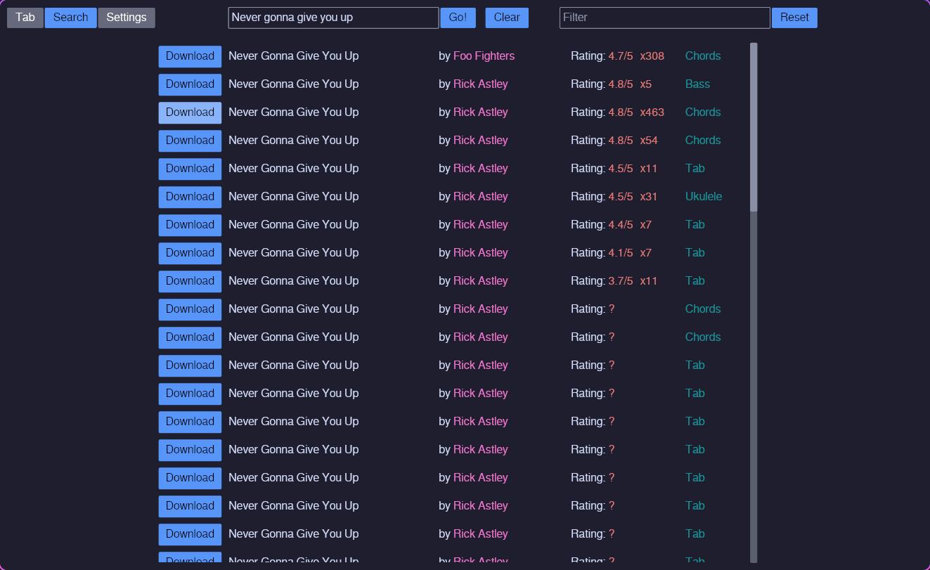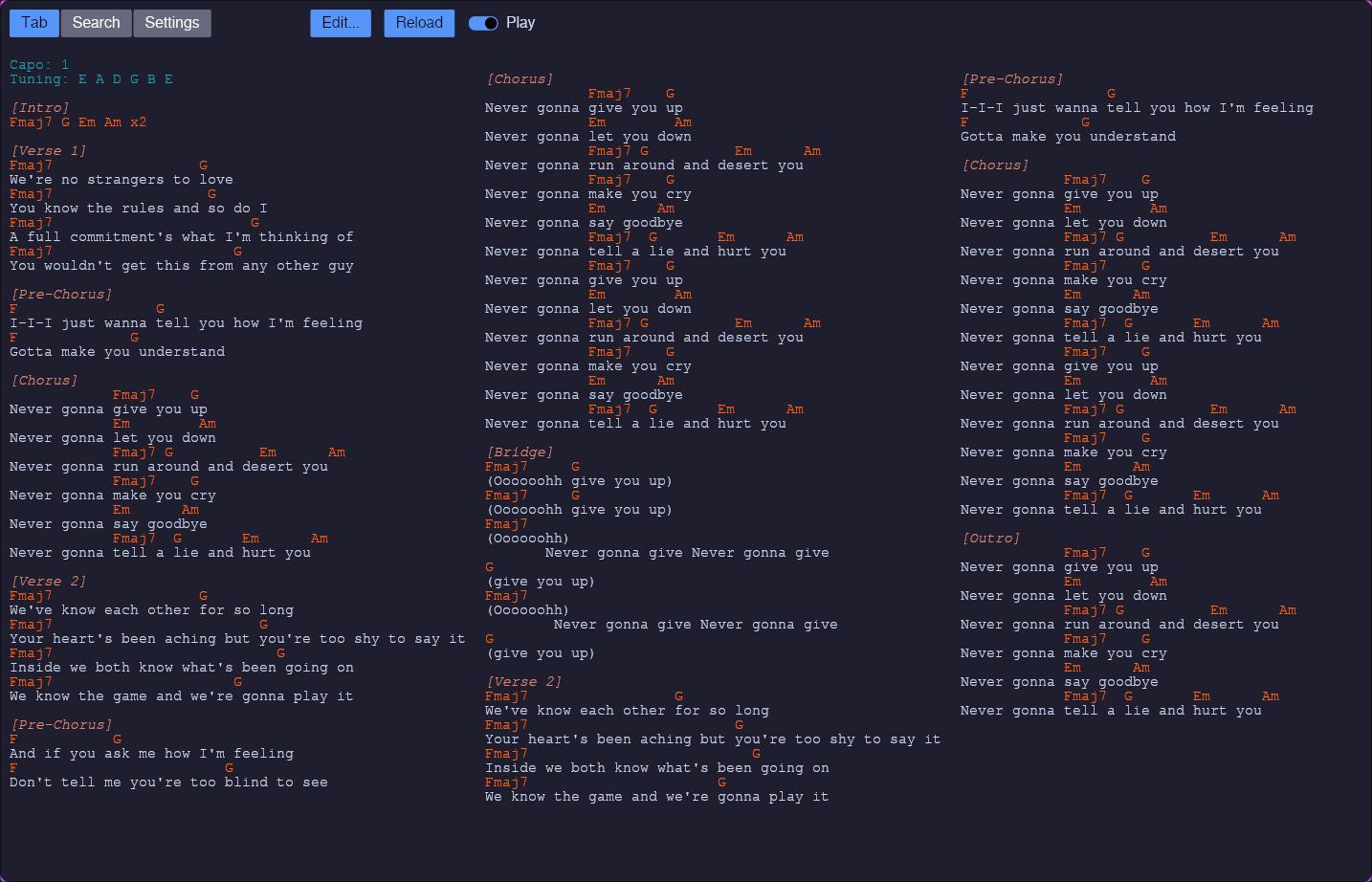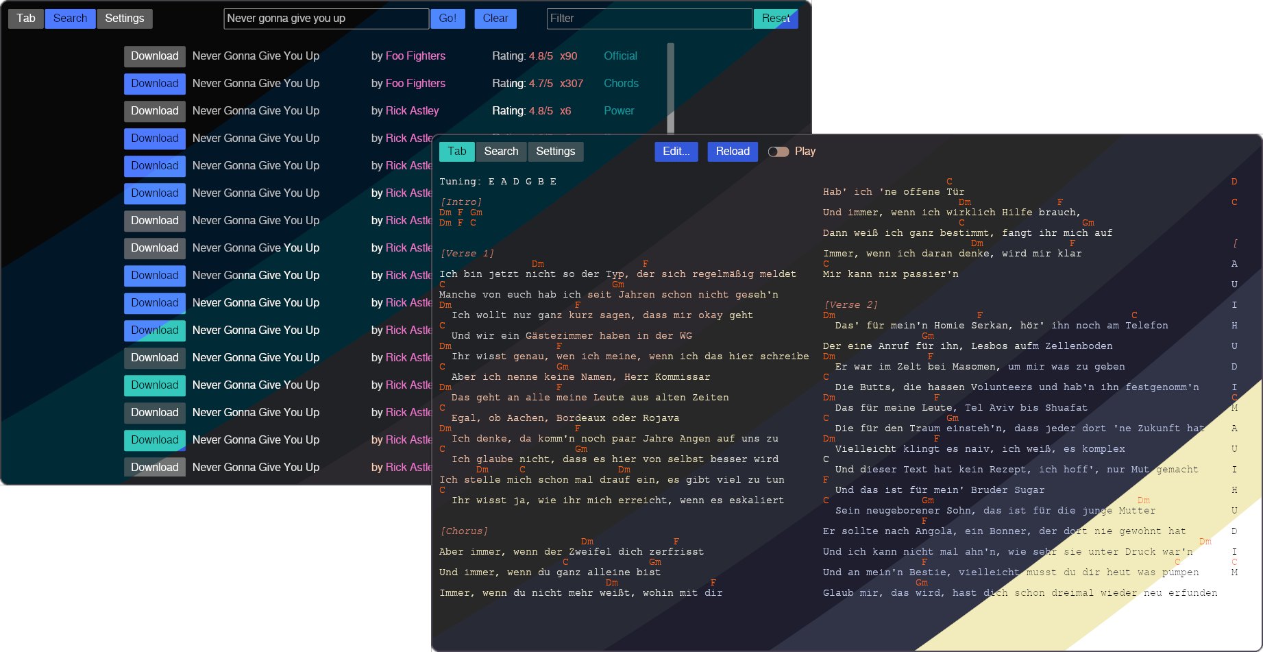 Easily find and download chords and tabs from Ultimate Guitar to sync them with any media player using MPRIS