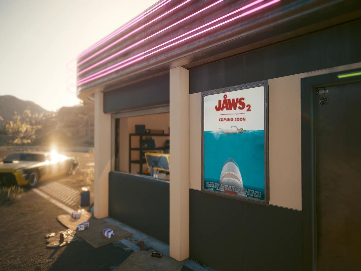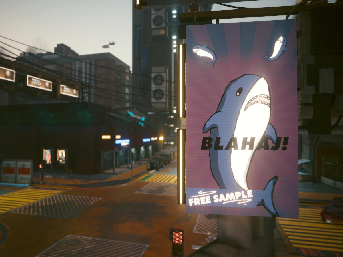 A simple mod replacing a bunch of textures to add Blåhaj themed ads and film posters.